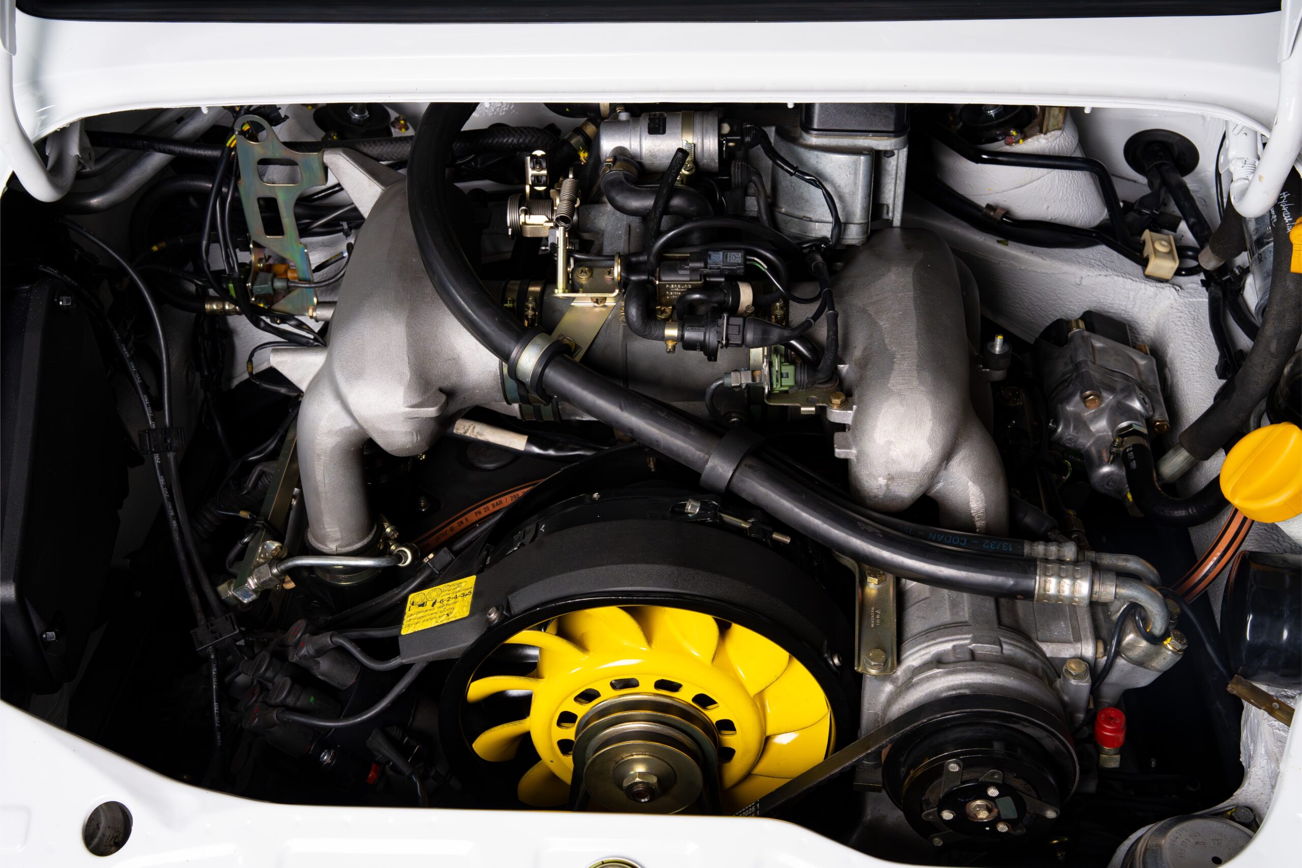 The 3.6-litre flat-six – Bosch DME injection, light single-mass flywheel, five-speed manual. Everything serves one purpose: pure, unfiltered drive.